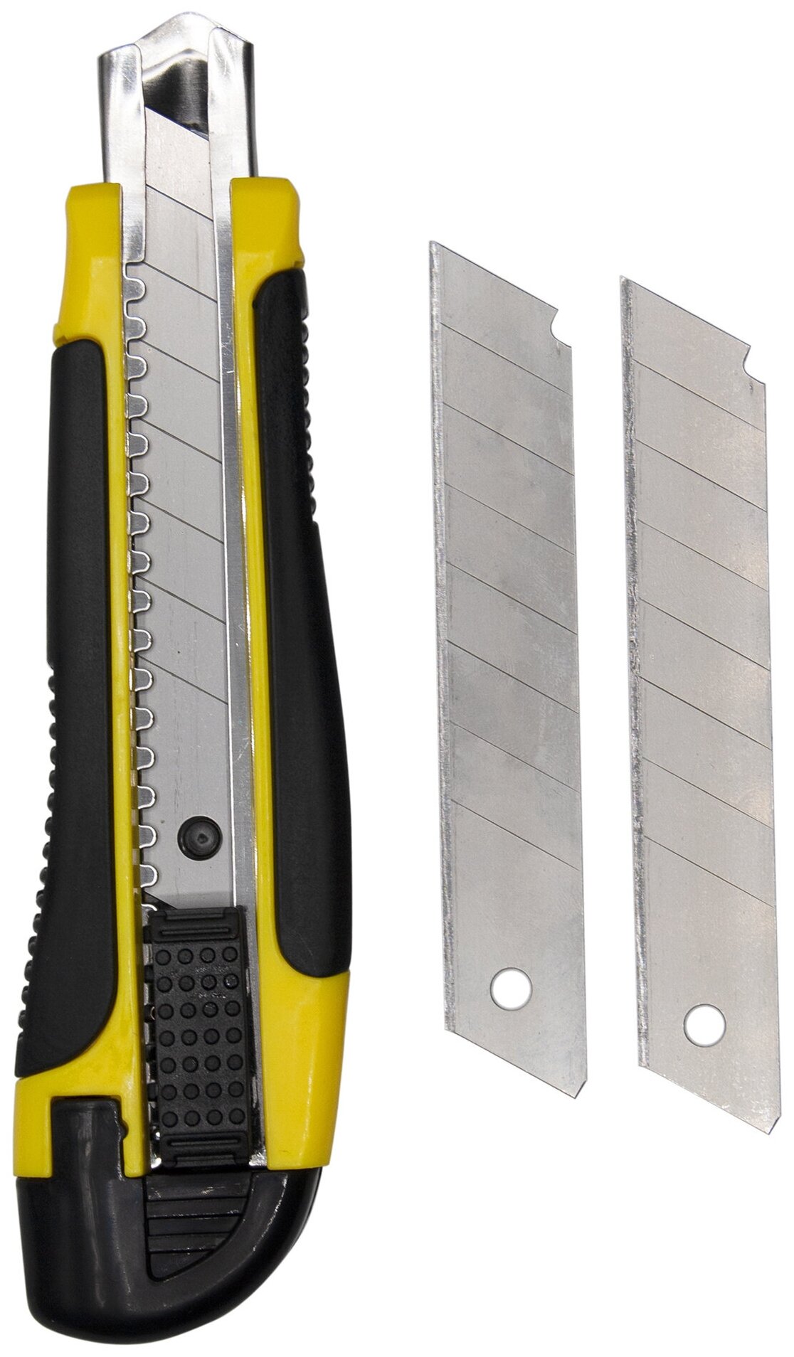 Нож канцелярский Silwerhof шир.лез.18мм фиксатор усиленный 2 сменных лезвия желтый/черный блистер информация: