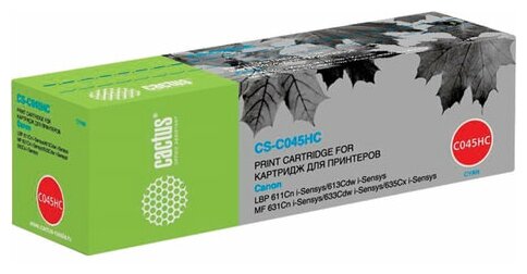 Картридж лазерный CACTUS (CS-045HC) для CANON MF635/633/631/LBP 611/613, голубой, ресурс 2200 стр., CS-C045HC В комплекте: 1шт.