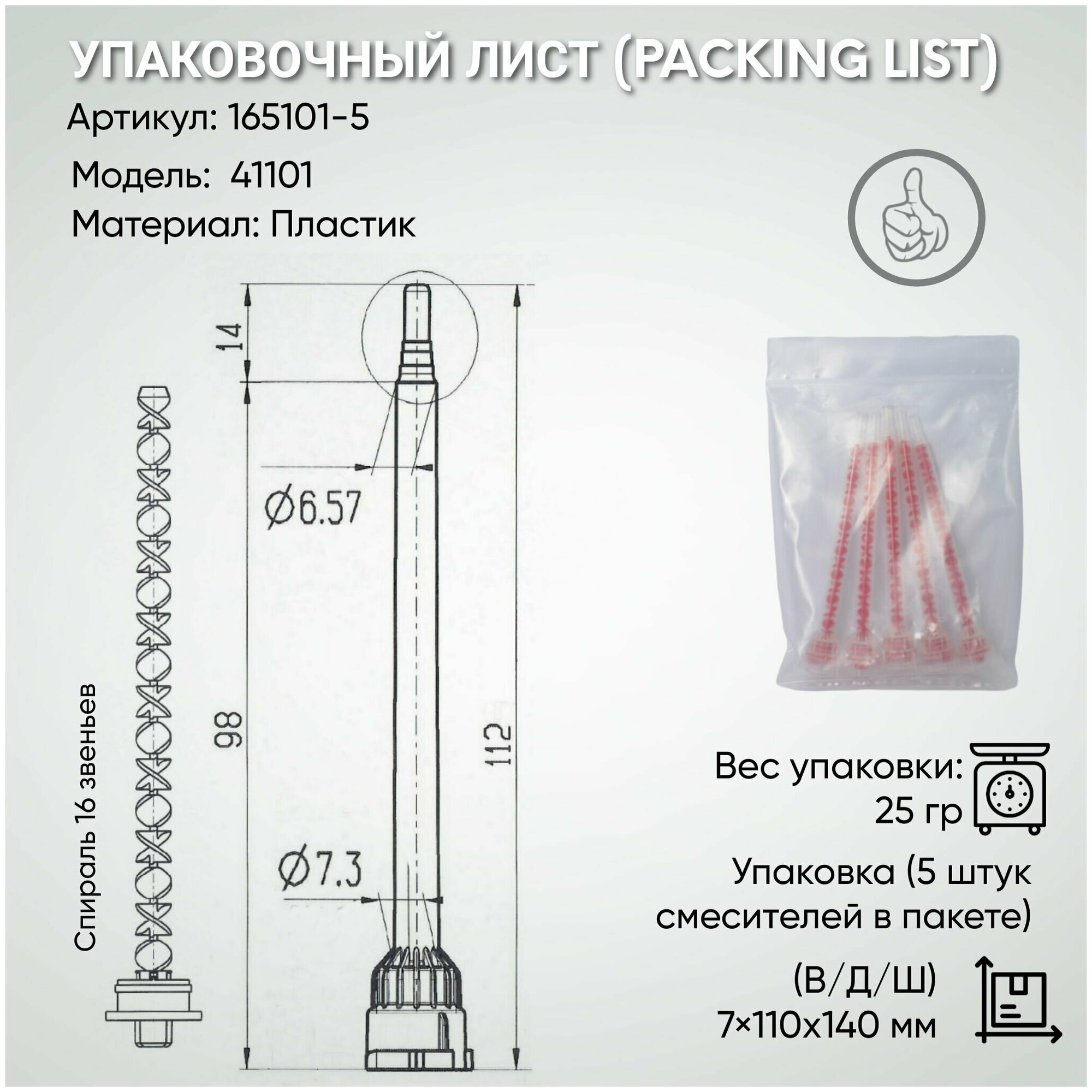 | Дополнительная информация | для смешивания 2х компонентного клея в двухкомпонентных клевых картриджей |