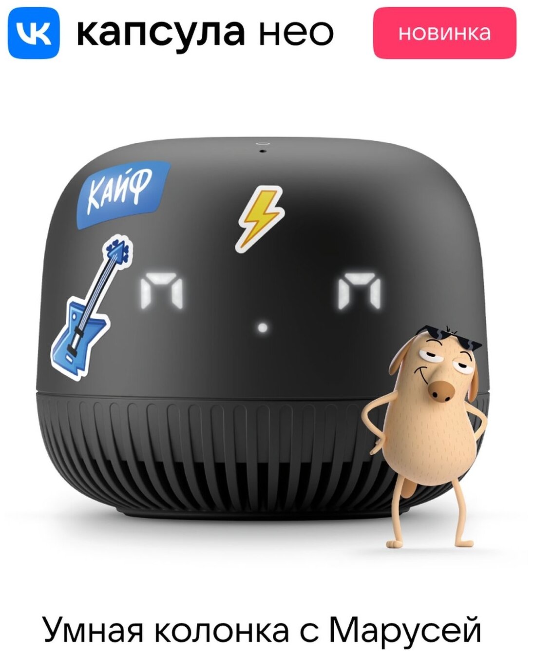 Умная колонка Маруся, VK Капсула Нео с голосовым помощником, умная станция, цвет чёрный, 3 месяца подписки VK + Wink в подарок