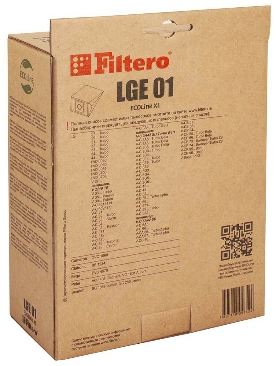 Filtero LGE 01 ECOLine XL, Мешки - пылесборники для пылесосов LG, SCARLETT, бумажные (комплект: 10 штук + фильтр)