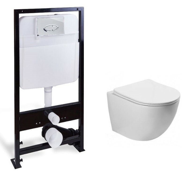 Унитаз подвесной с инсталляцией SantiLine SL-5005+SL-01 безободковый с сиденьем и клавишей смыва хром 23 275 ₽