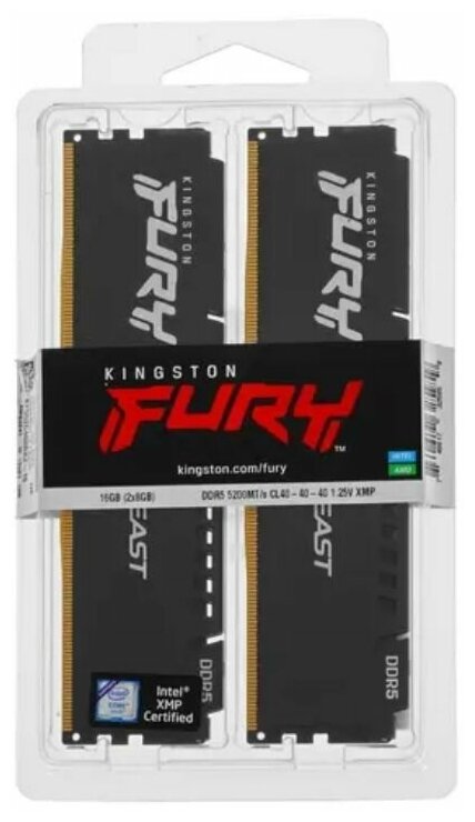 Модуль памяти Kingston Fury Beast Black DDR5 DIMM 5200MHz PC-41600 CL40 - 16Gb Kit (2x8Gb) KF552C40BBK2-16 информация: