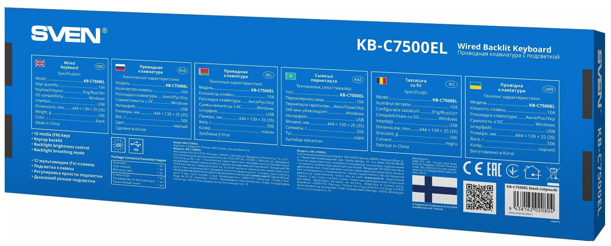 Игровая клавиатура SVEN KB-C7500EL, 104 клавиши, дышащий режим подсветки информация: