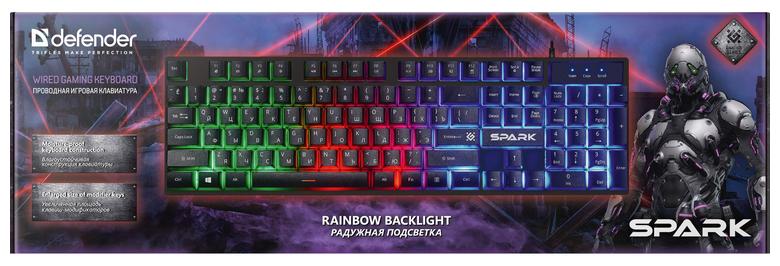 Игровая клавиатура Defender Spark GK-300L RU,радужная подсветка информация: