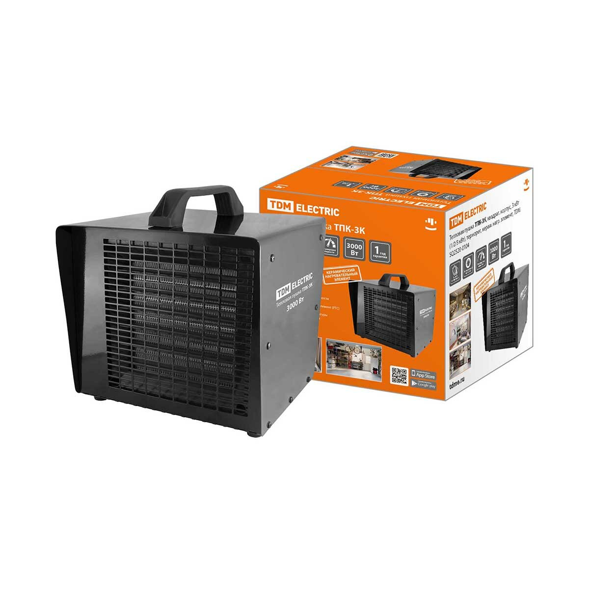 Тепловая пушка ТПК-3К, квадрат. корпус, 3 кВт (1/2/3 кВт), терморег, керам. нагр. элемент, TDM Артикул SQ2520-0104
