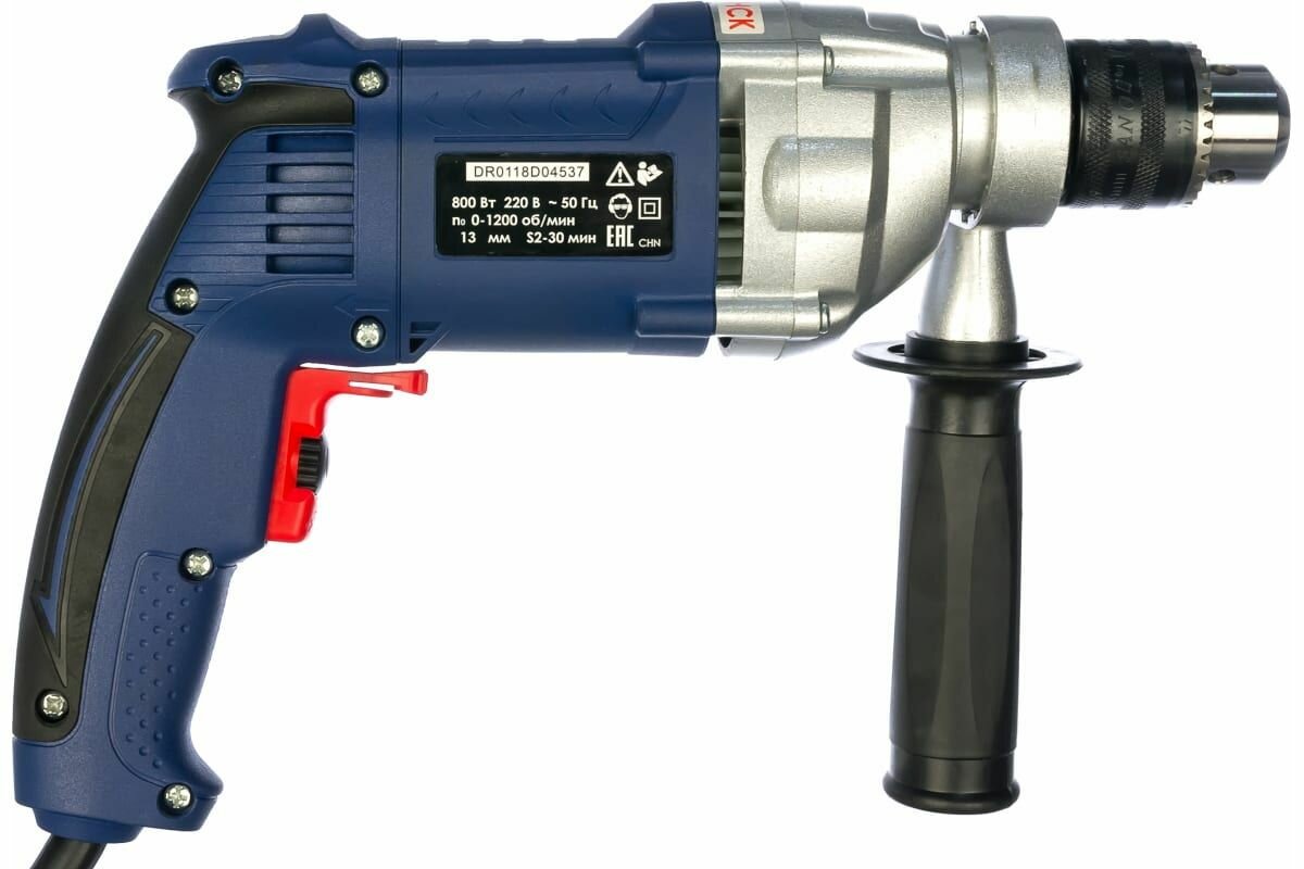 Дрель сетевая ударная электрическая, сдвоенный подшипник, патрон 1,5-13 мм, реверс, 900 Вт, 2500 об/мин, металлический корпус редуктора