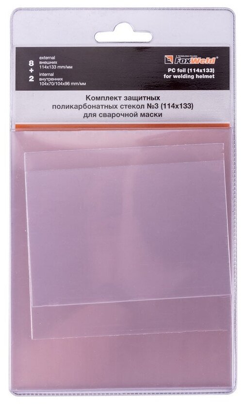 Foxweld Комплект поликарбонатных стекол №3 8 внешних 114x133мм, 1 внутреннее 104x70мм, 1 внутреннее 104x96мм, для масок GEFEST 5318