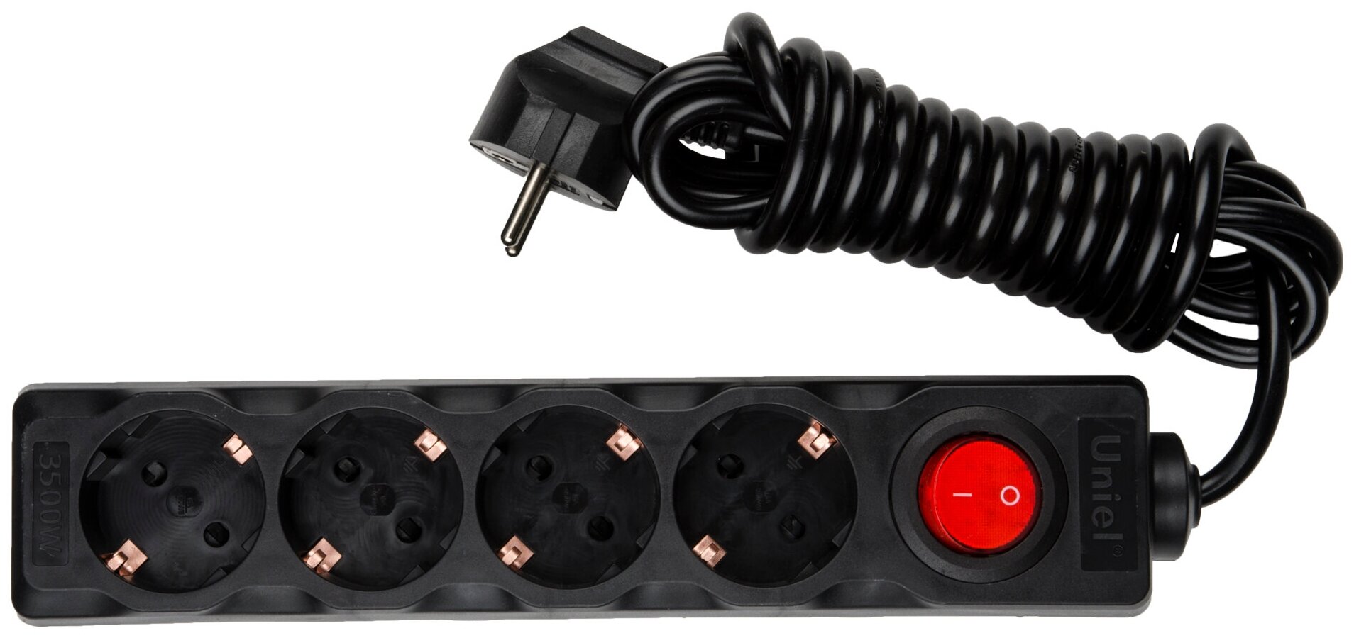 Удлинитель Uniel S-GCD4-3B, 4 розетки, с/з, 16А / 3500 Вт черный 3 м 1 м² 4