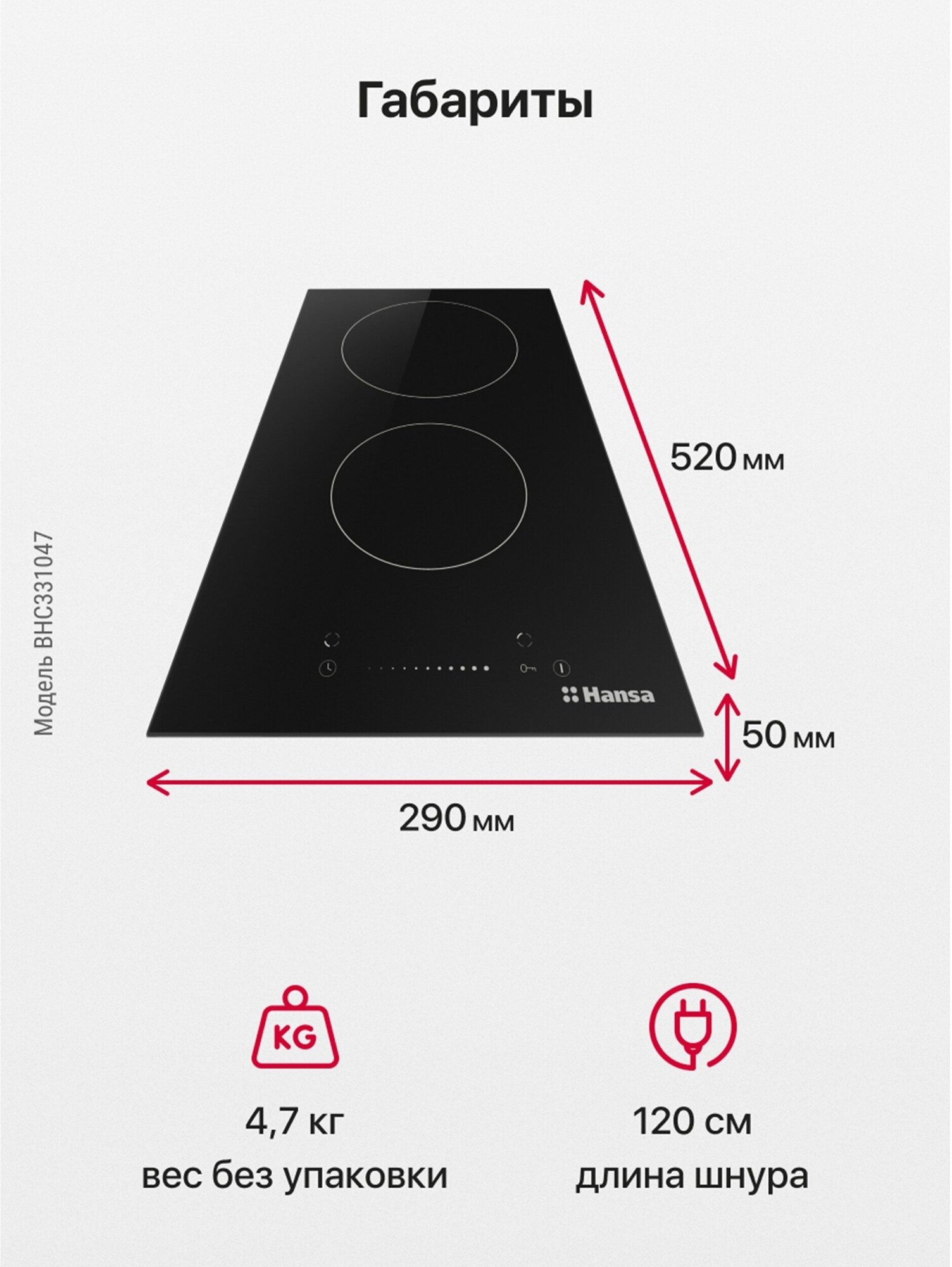 Индукционная варочная поверхность Hansa BHI67606 Induction 3.0, 60 см, черный