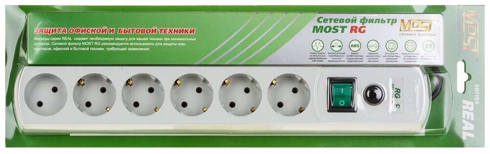 Сетевой фильтр MOST REAL RG-16А-б 2м 6 розеток, белый информация: