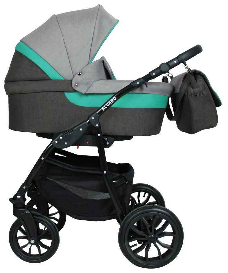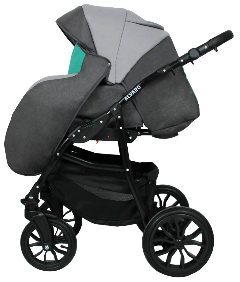 Коляска 2в1 Alis Alvaro универсальная, всесезонная, (01), темно-серый, светло-серый, бирюзовый