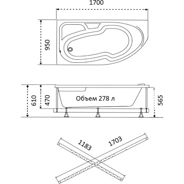 Ванна акриловая Triton София 170х95 правая (Х) ассеметрия, в комплекте с каркасом усиленным