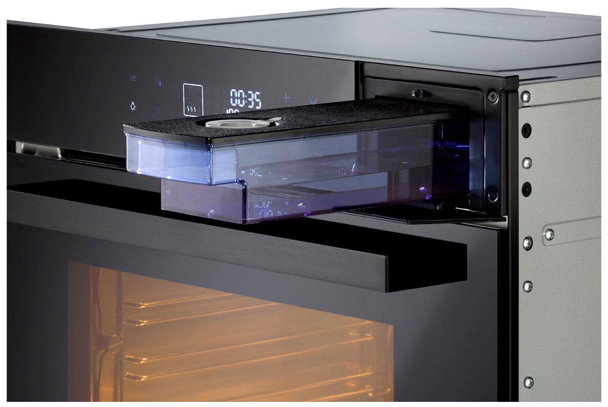 Подробная комплектация | духовой шкаф, металлическая решетка, универсальный поддон (поддон для капель жира/противень), перфорированный поддон, резервуар для воды, водопоглотитель, перчатки для духовки |