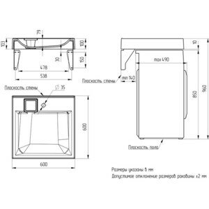 Умывальник "Siena " 60*60 ш*г над стиральной машиной без перелива, с кронштейнами (Paola)