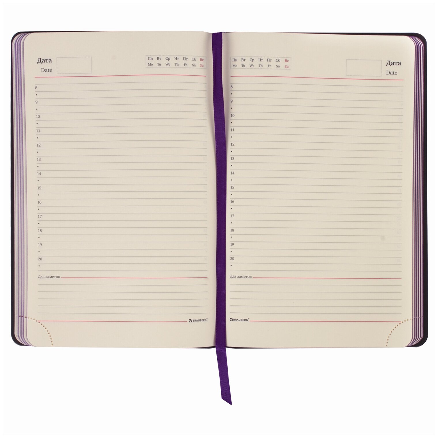 Ежедневник недатированный A5 BRAUBERG Stylish, в линейку, 160 листов фиолетовый (111861)