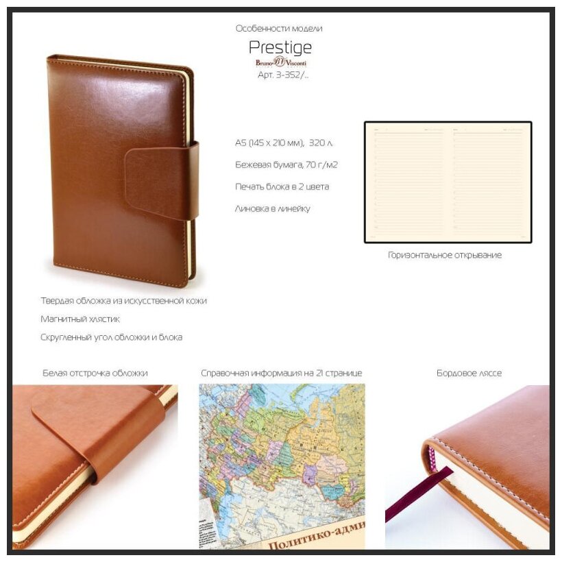 Ежедневник недатированный Bruno Visconti "PRESTIGE" в твердой обложке, с магнитным клапаном, бордовый А5 арт.3-352/06 1 430 ₽