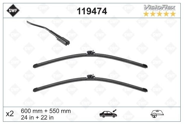 Щётки с/о 600/550мм visioflex, swf, 119 474 информация: