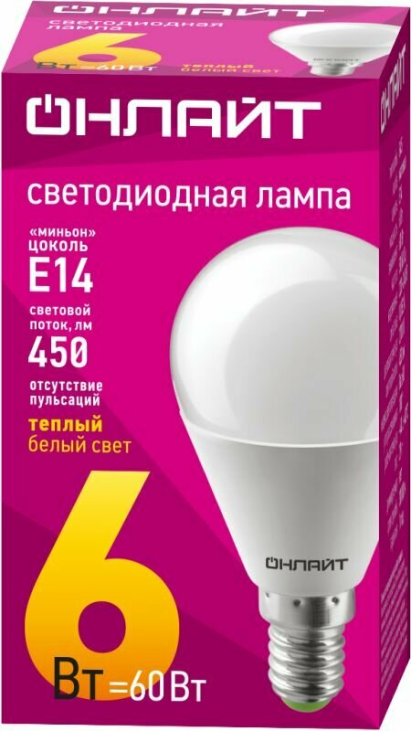 Отзывы на Лампа светодиодная 71 643 OLL-G45-6-230-2.7K-E14 6Вт шар 2700К тепл. бел. E14 450лм 176-264В онлайт 71643