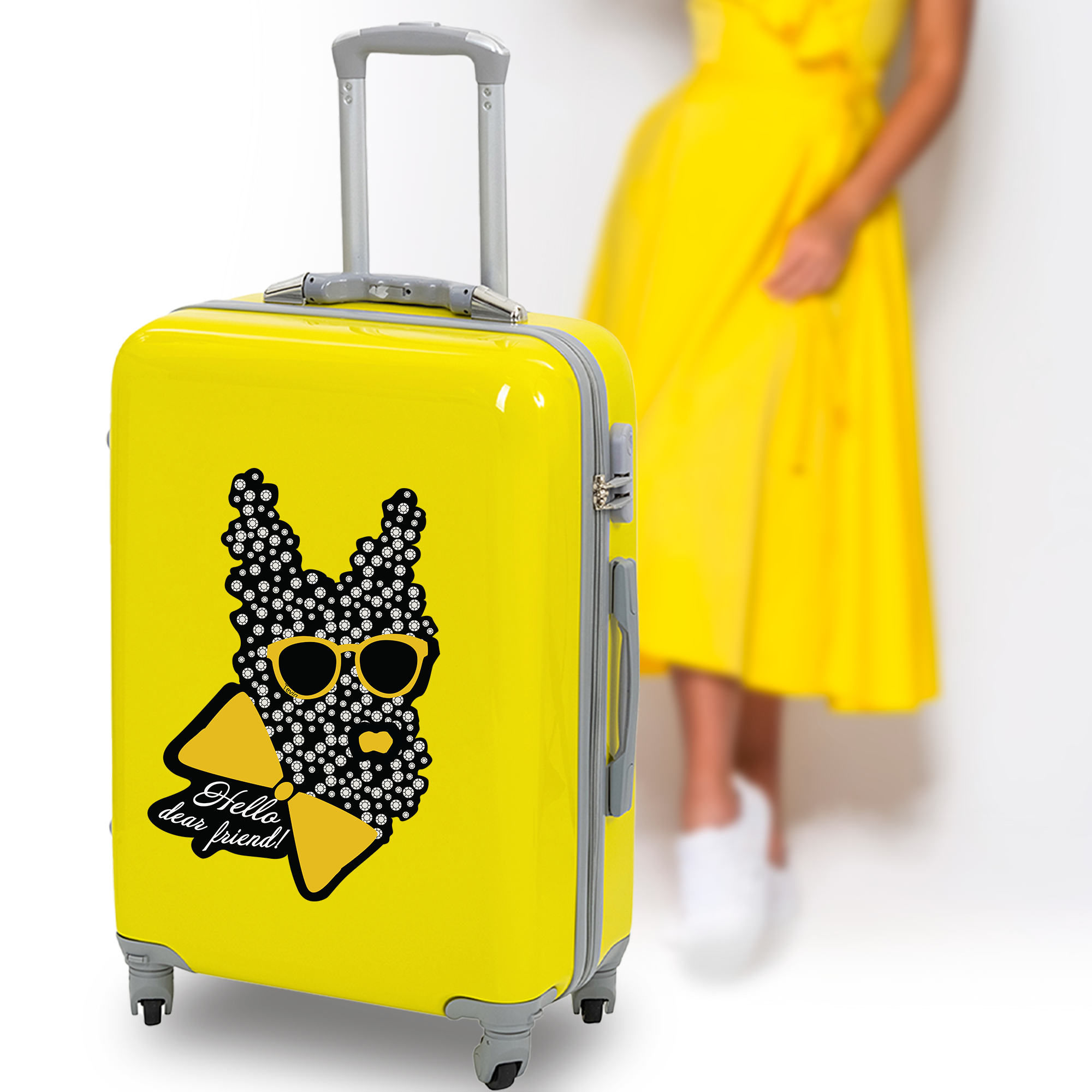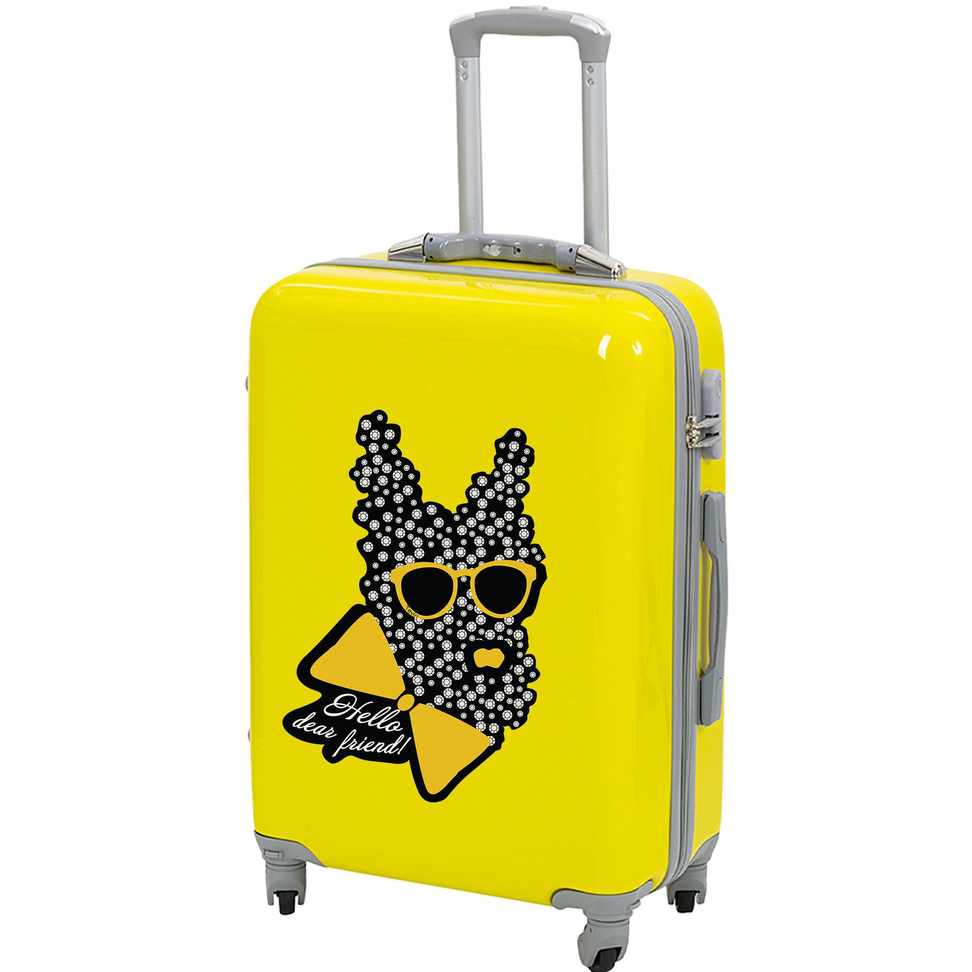 Чемодан на колесах дорожный средний багаж для путешествий женский s+ TEVIN размер С+ 60 см 52 л легкий 2.6 кг прочный поликарбонат Желтый с рисунком информация: