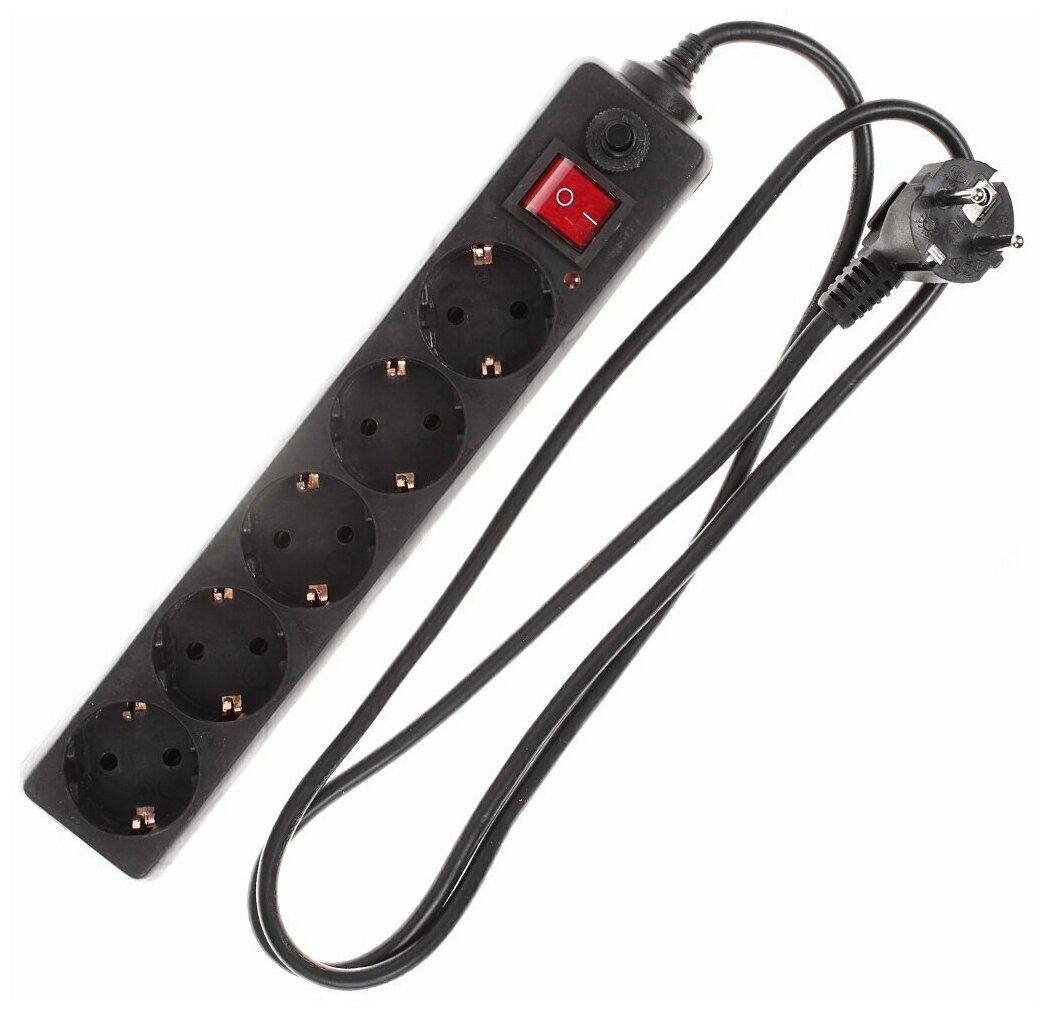 Сетевой фильтр СФ-05В выключатель, 5 гнезд, 3 метра, с заземлением, ПВС 3х1мм2 16А/250В черный TDM SQ1304-0002