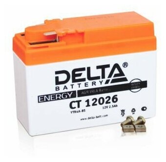 Аккумулятор для мотоцикла и скутера Delta CT12026 12V 2.5 А/ч 45 А обр. пол. залит/заряжен YTX4A-BS, YTR4R-BS (114х49х86) AGM VRLA 1 850 ₽