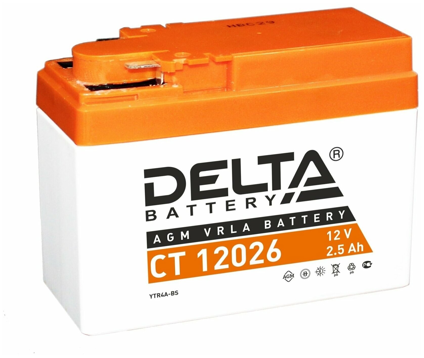 Аккумулятор DELTA CT-12026 для мототехники (12В, 2.5Ач / 12V, 2.5Ah / стартерный ток 45А) YTR4A-BS