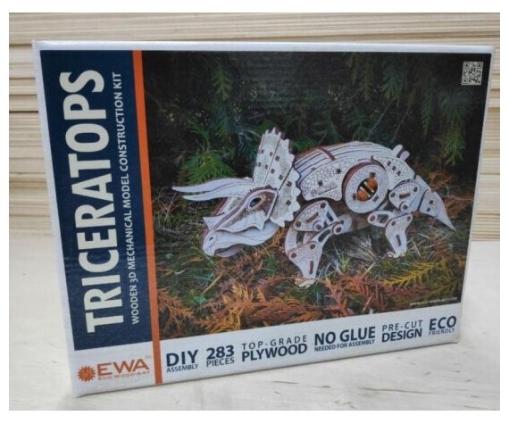 Сборная модель Eco Wood Art EWA Динозавр Трицератопс информация:
