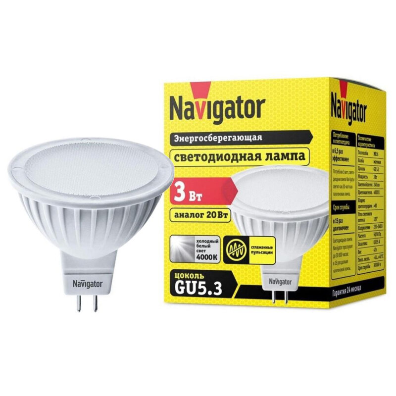 Отзывы на Лампа светодиодная Navigator NLL-MR16-7-230-4K-GU5.3 7Вт 4000K GU5.3 94245