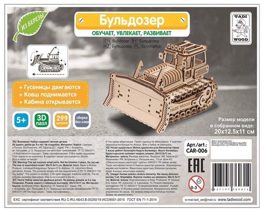 Конструктор деревянный Tadiwood "Бульдозер" (CAR-006) информация: