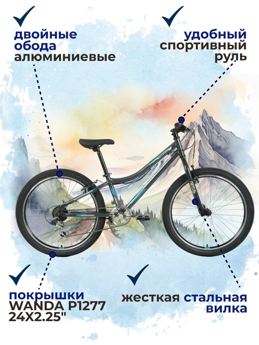 Велосипед FORWARD TITAN 24 1.0 (24" 6 ск. рост. 12") 2022, темно-серый/бирюзовый, RBK22FW24018 информация: