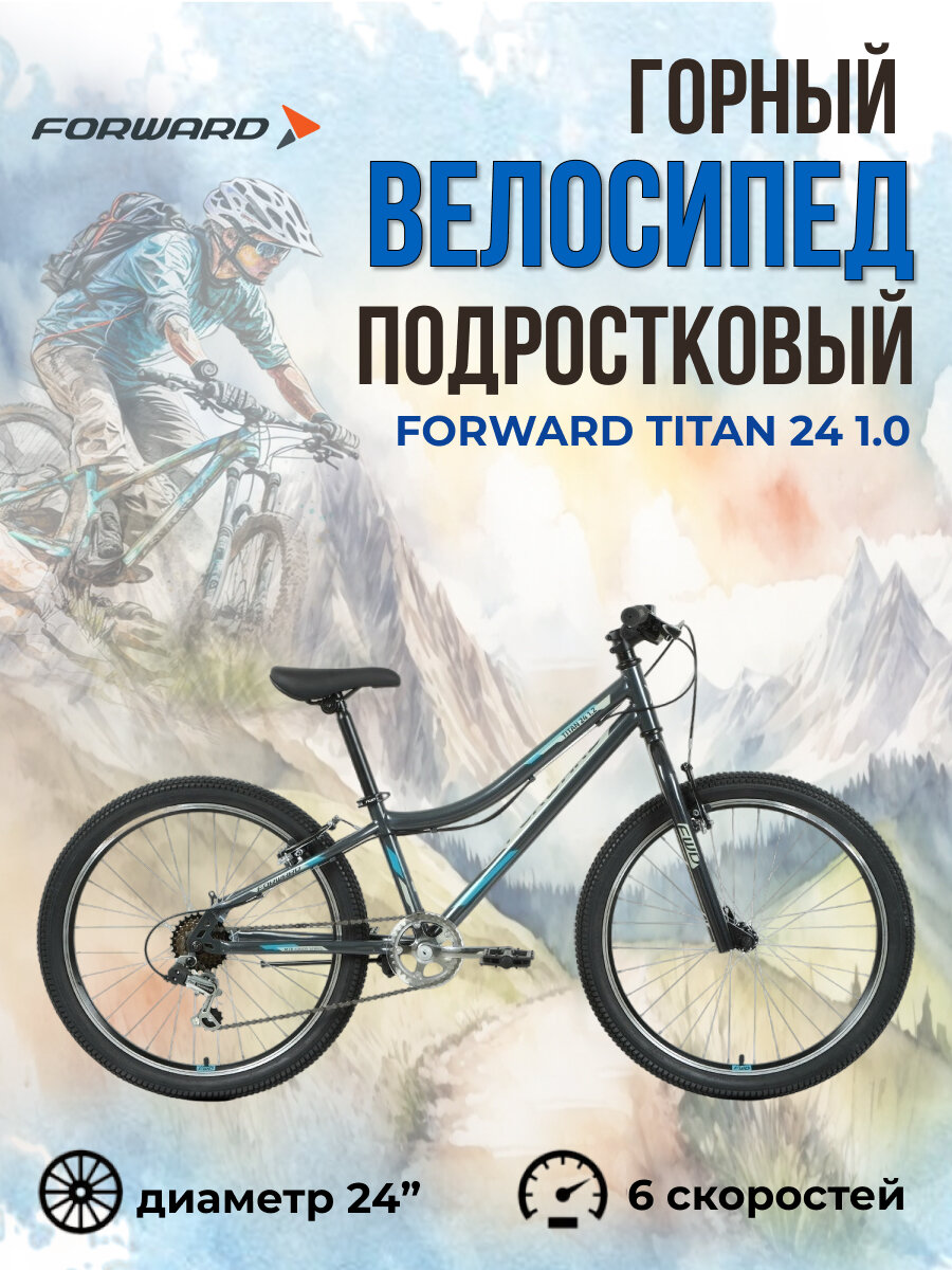 10 цен на Велосипед FORWARD TITAN 24 1.0 (24" 6 ск. рост. 12") 2022, темно-серый/бирюзовый, RBK22FW24018