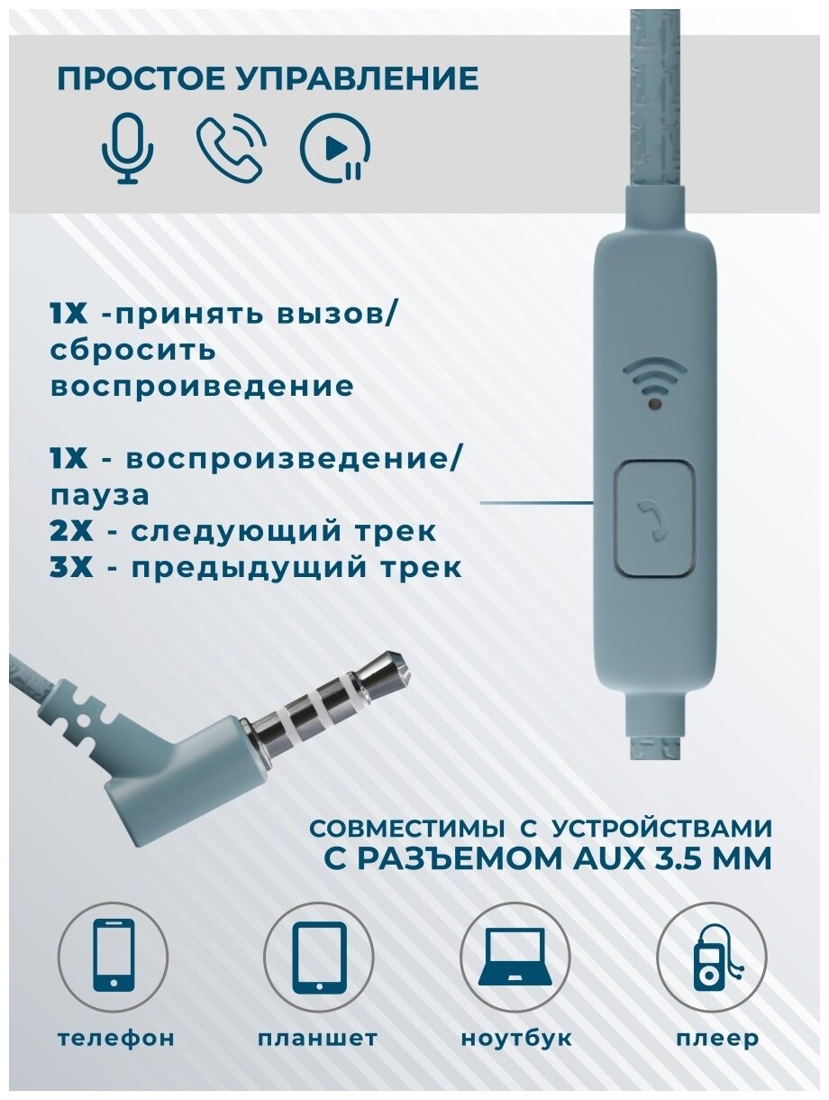Наушники вакуумные для AUX разъема с микрофоном длина 1.1м More Choice G20 Blue