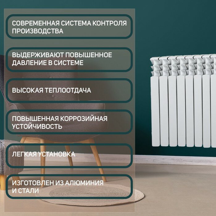 Радиатор биметаллический Tropic, 500 x 80 мм, 10 секций 2398265