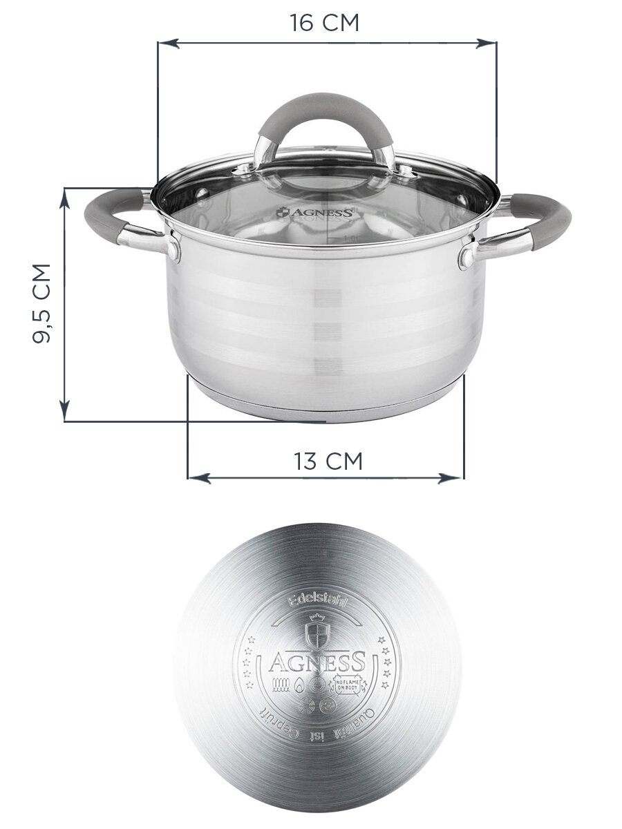 Кастрюля AGNESS CLASSIC со стеклянной крышкой 1,6 Л. 16X9,5 СМ