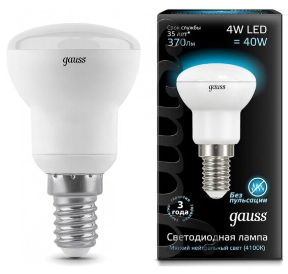 Лампа LED Gauss R39 4W 370lm 4100K Е14(10шт) информация: