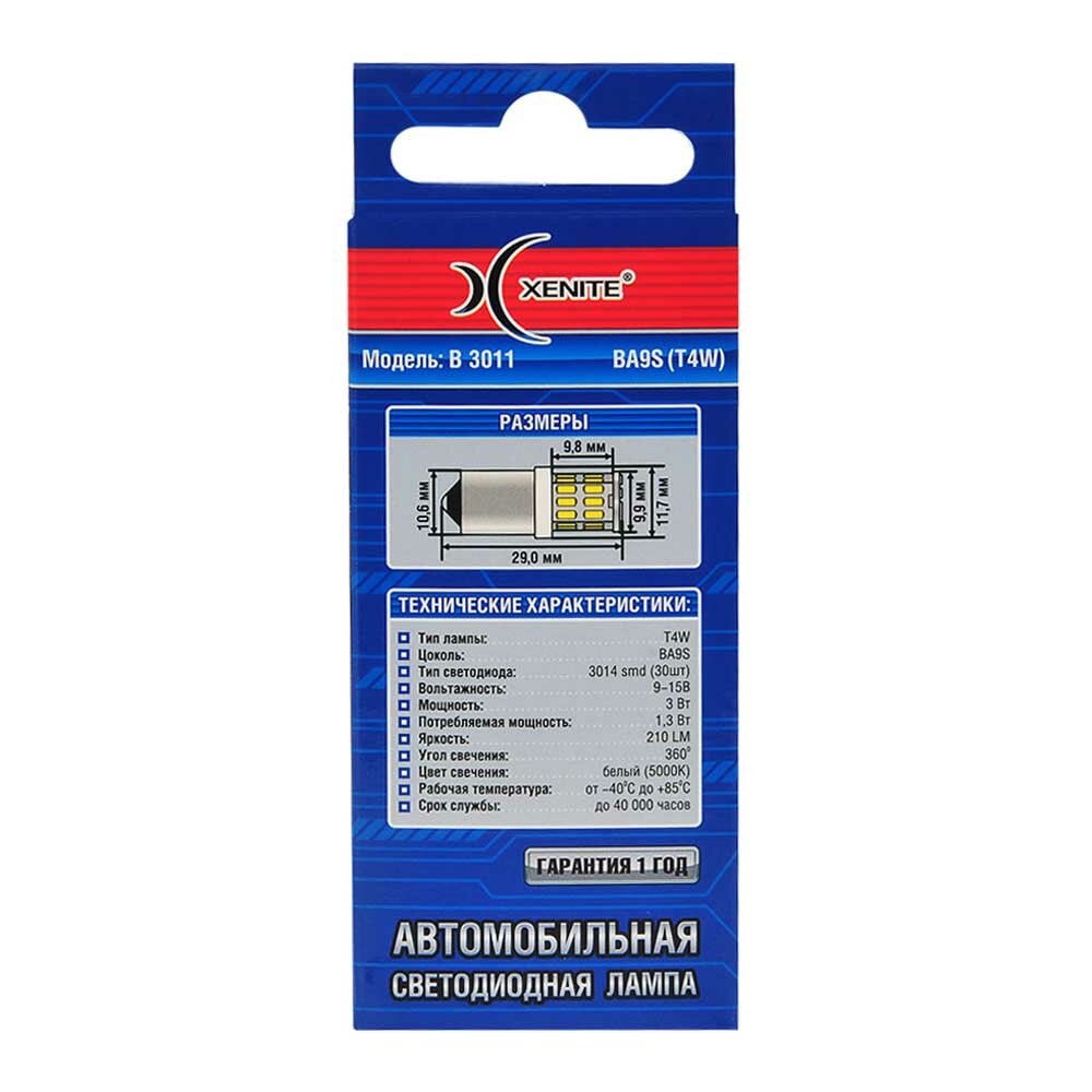 Лампа автомобильная светодиодная Xenite 1009544 B3011 Т4W 3W BA9s 5000K 2 шт.