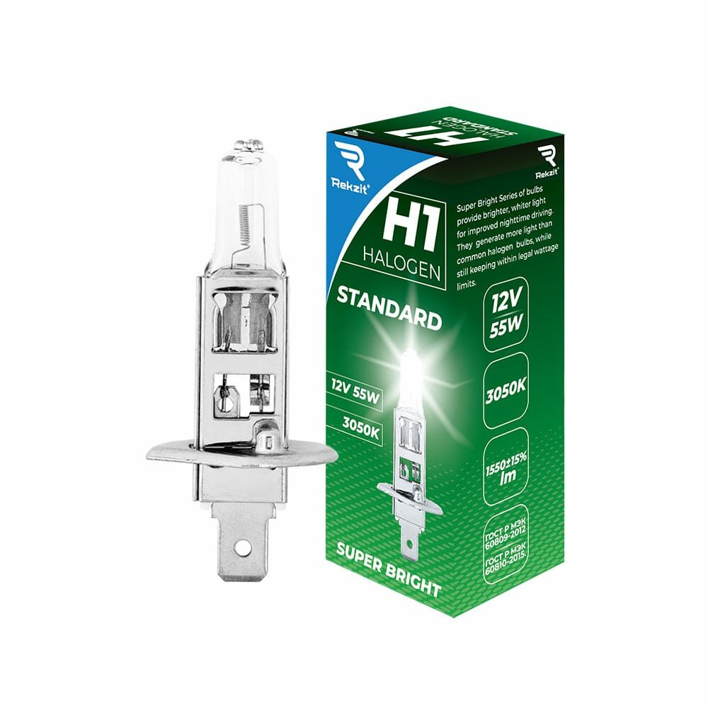 Лампа галогенная H1 12V 55W "REKZIT" STANDARD (1 шт.) REKZIT 90010 | цена за 1 шт