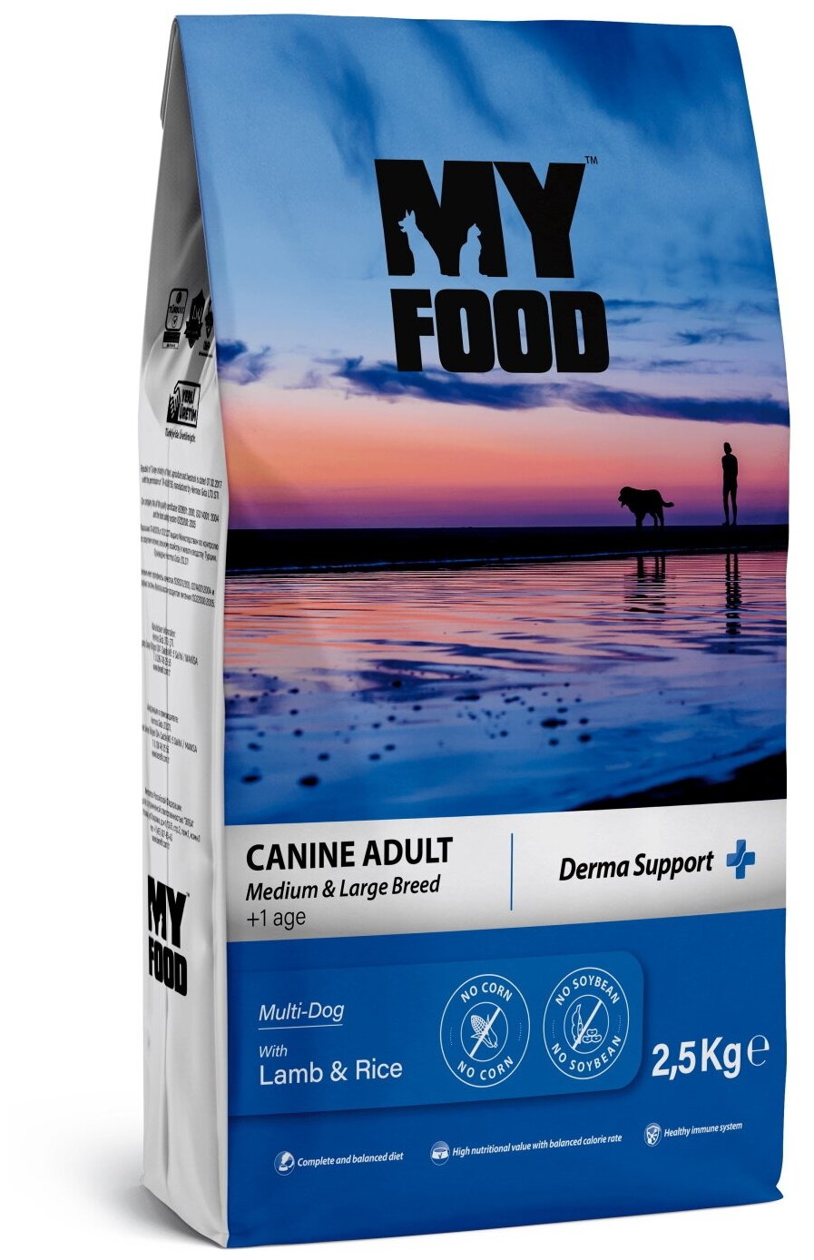 MYFOOD CANINE ADULT MEDIUM & LARGE LAMB & RICE для взрослых собак средних и крупных пород с ягненком и рисом (2,5 кг)