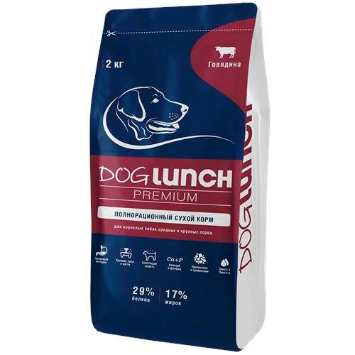 DOG LUNCH PREMIUM для взрослых собак средних и крупных пород с говядиной (2 кг) информация: