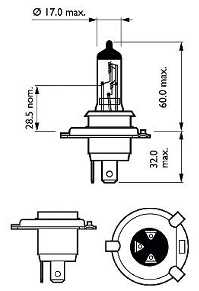 Галогенная лампа Philips H4 12V 60/55W +200% (P43t) Racing Vision GT200 12342RGTS2 информация: