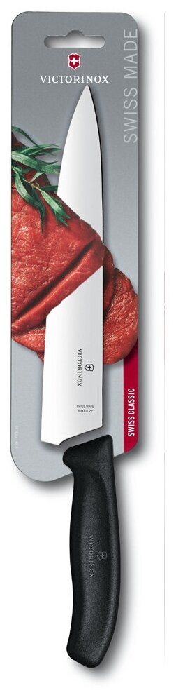 Нож разделочный VICTORINOX Swiss Classic, лезвие 22 см, черный, в картонном блистере 6.8003.22B