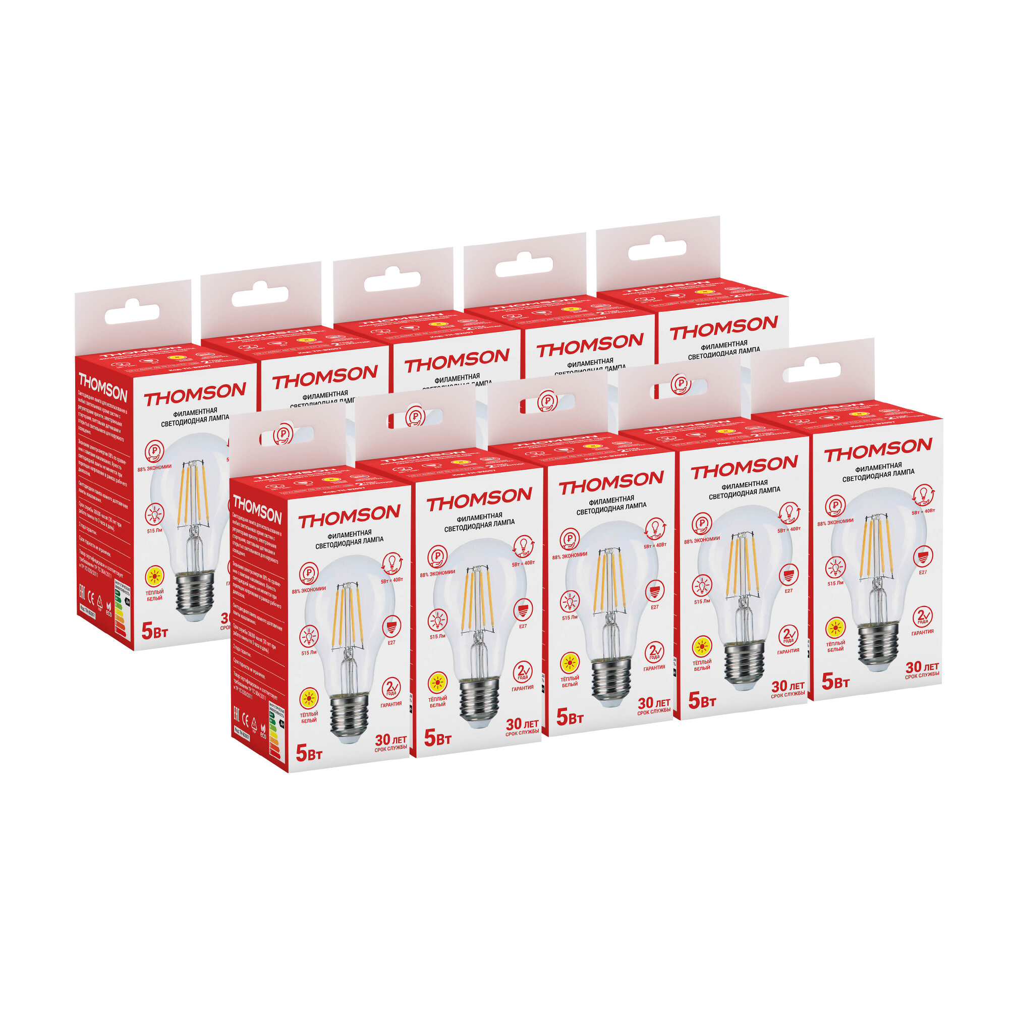10 цен на Лампа светодиодная филаментная Thomson E27 5W 2700K груша прозрачная TH-B2057