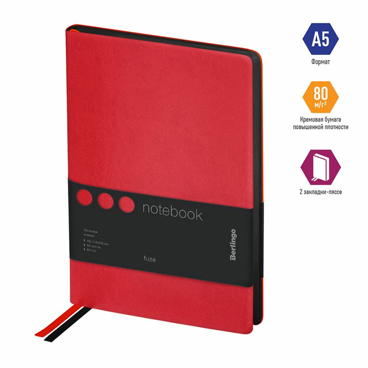 Записная книжка А5 Berlingo "Fuze", 80 листов, клетка, кожзам, цветной срез, красный (NB0_87508) информация: