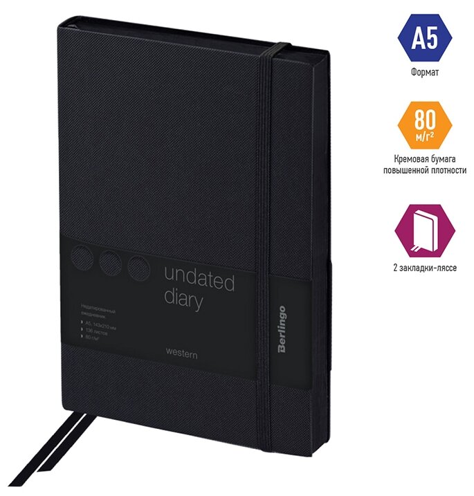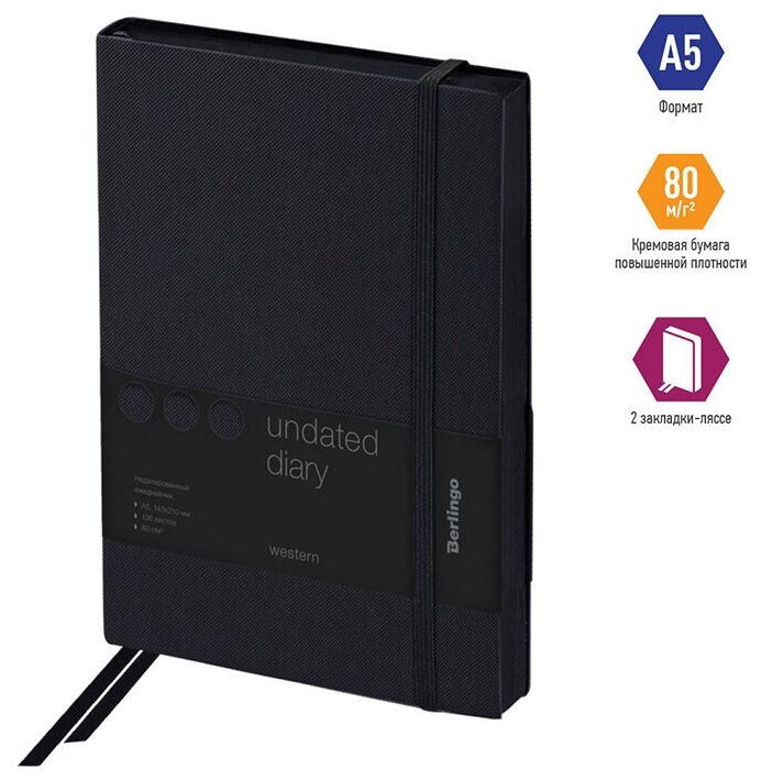 Ежедневник недатированный А5 Berlingo Western (136 листов) обложка кожзам, с резинкой, черная (UD0_85501)