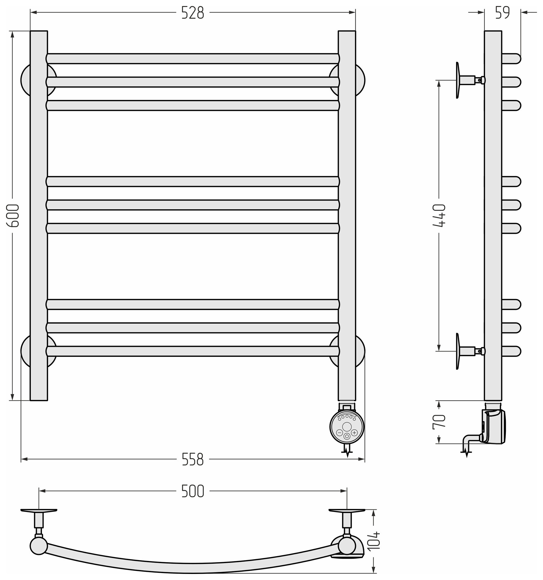 TERMINUS Полотенцесушитель электрический Terminus Хендрикс П6 500x596, ТЭН HT-1 300W, левый/правый