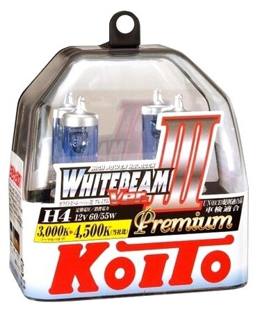 Высокотемпературная лампа KOITO Whitebeam Premium H4, 12 В, 60/55 Вт, 135/125 Вт, 4500 K, комплект 2 шт. P0744W 121021