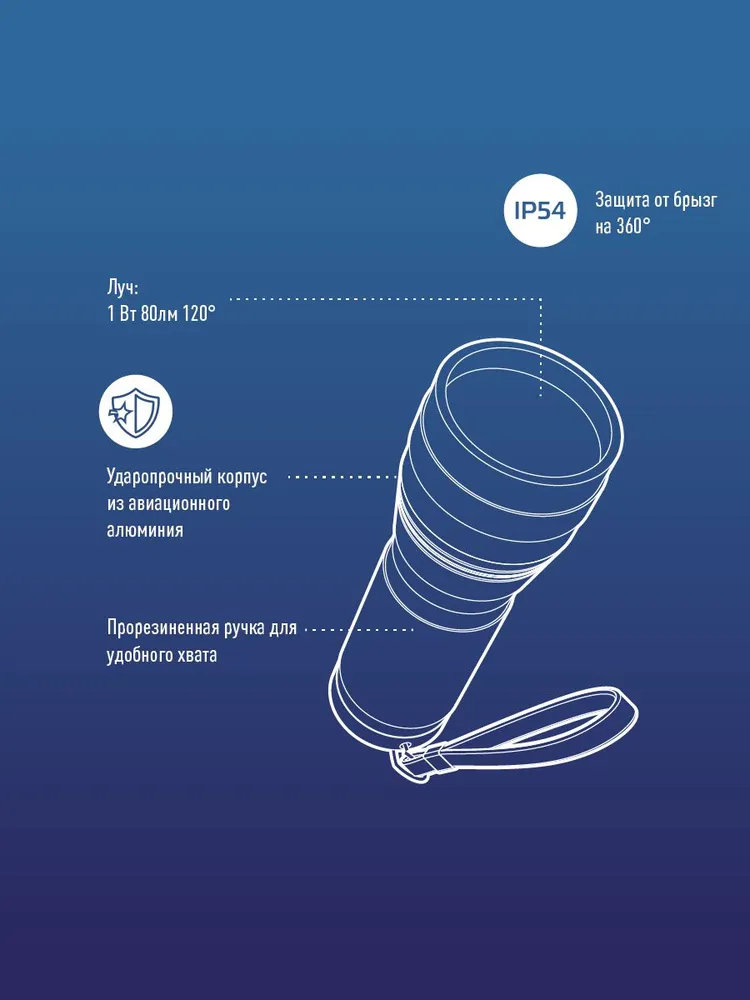 Отзывы на Фонарь ручной 1ВтLED 3xAAА корпус алюминий ремешок ручной космос KOS109B