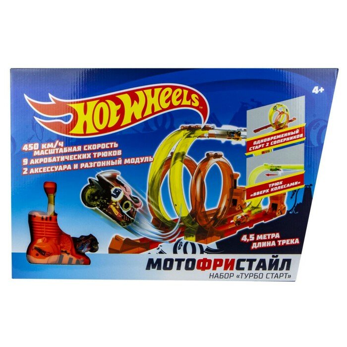 Трек Hot Wheels Мотофристайл с двумя мини-мотоциклами и двумя турбоускорителями, набор Турбо старт Т16724 4 324 ₽