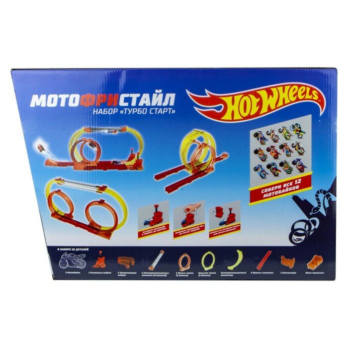 Автотрек Hot Wheels Мотофристайл (2 инерционных мотобайка, 2 турбоускорителя, 20 деталей трека, 2 аксессуара для трюков)